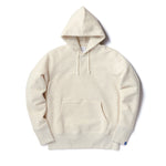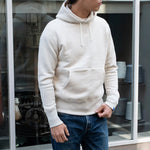 The “LW05” is LOOPWHEELER’s iconic pullover hoodie. Like the LW01, it features a tubular body construction with no side seams, using fabric knitted in a continuous, seamless tube. Flat seams are strategically used in the sewing process. This combination of Tsuriami knitting fabric, tubular body, and flat seams creates an authentically crafted hoodie.