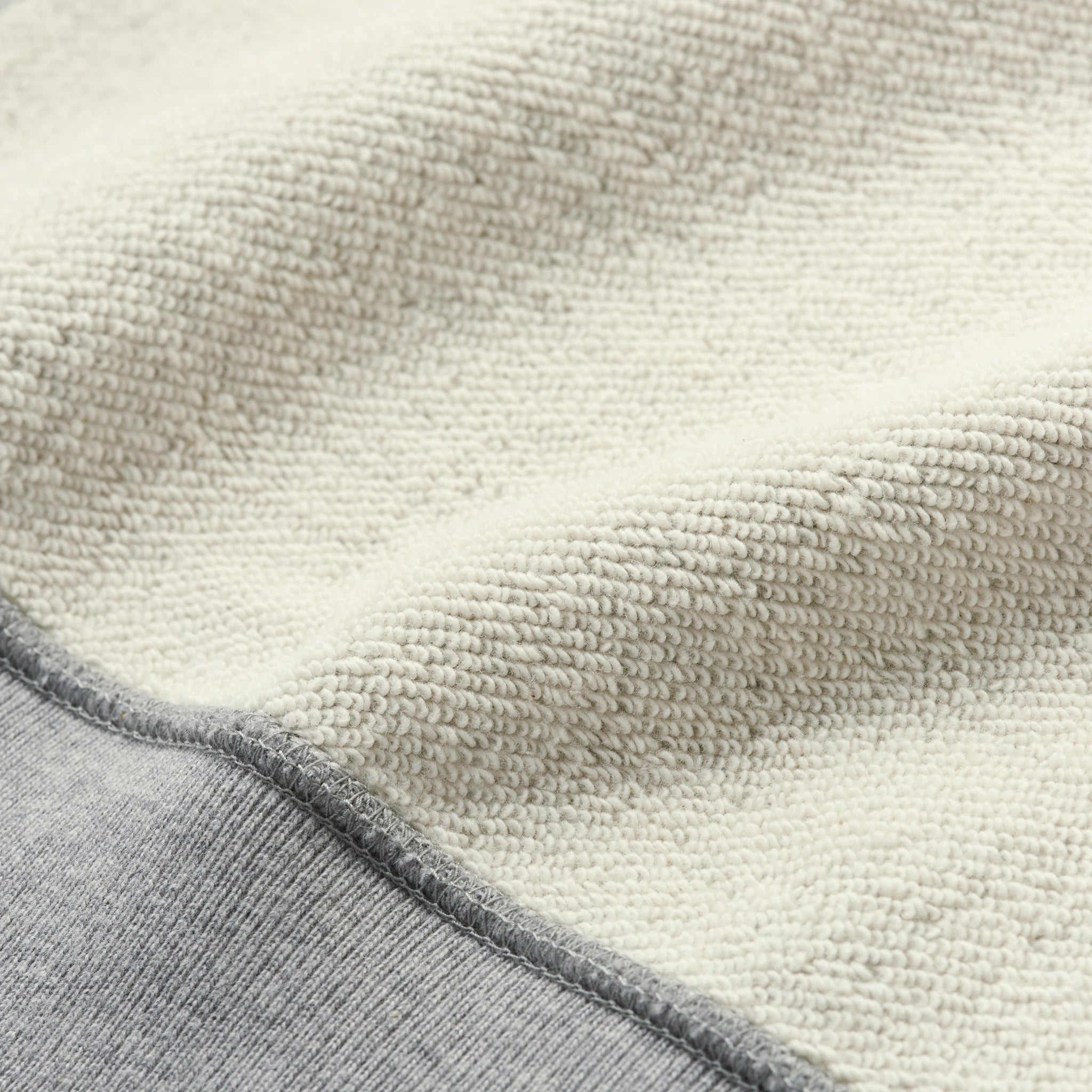 LWライトは大きな口径の吊り編み機で編むため、丸く編んだ生地を一枚の布状にして使用します。パンツやシーズンアイテム、色々な小物などに至り、吊り裏毛の特性と自由なデザインを楽しむことができる秀逸な素材です。