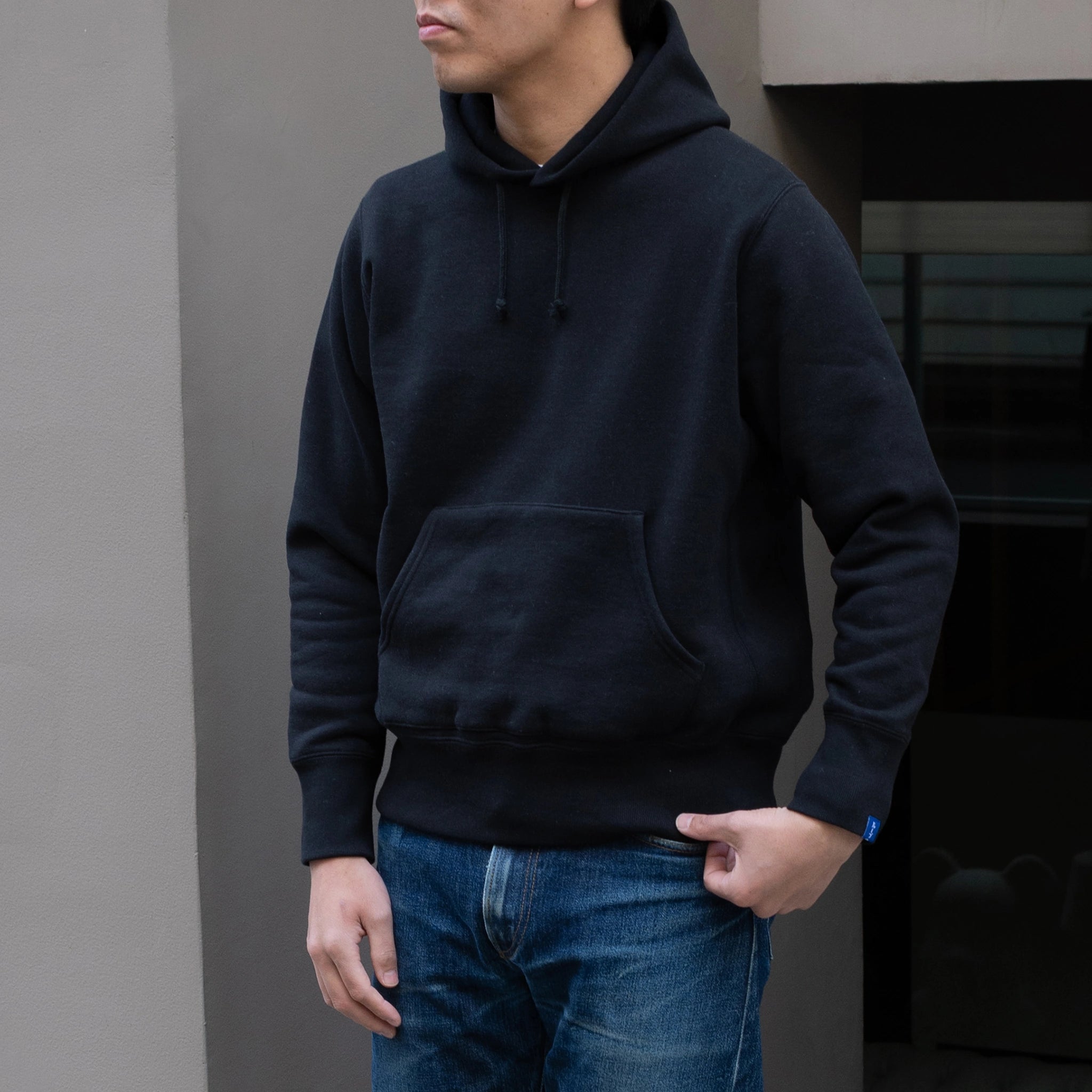LW359 吊り編みサイドガゼットプルオーバーフーディ ブラック
